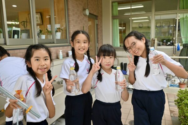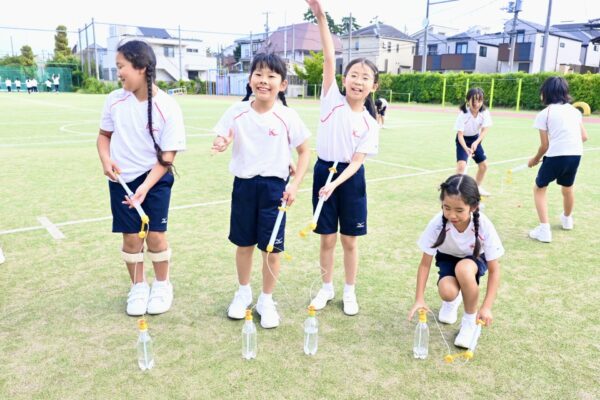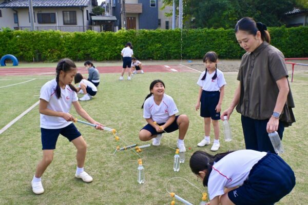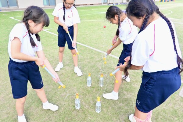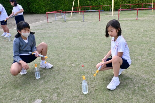 4年生の理科の授業では、「とじこめた空気と水の性質」について学びました。今回は、その学習を深めるために、空気と水の力を使ってボールを飛ばす「噴水ボール」に挑戦しました。