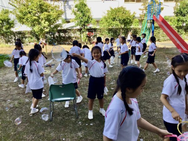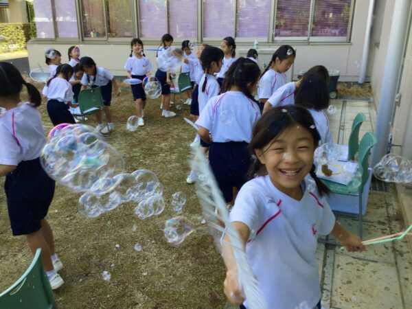秋の日の光にキラキラと輝くシャボン玉のように、子どもたちの笑顔も輝いた楽しい「生活科」の授業となりました。