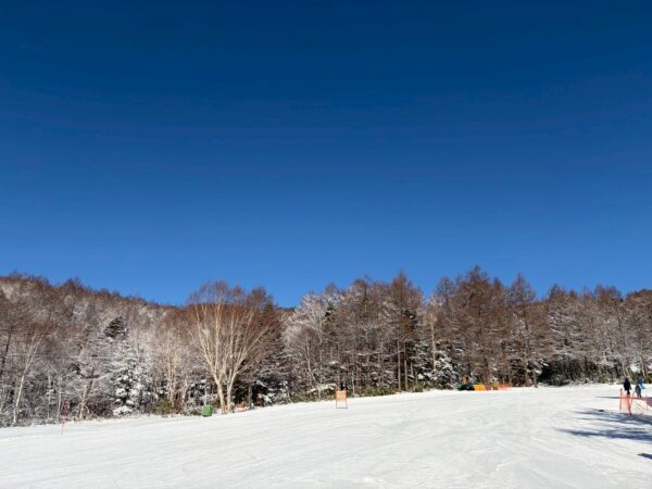 スキー学校3日目、今日は朝から快晴、真っ青な空にした、子供たちは颯爽とゲレンデへ出て行きました。