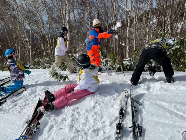 休憩時間には、雪遊びも。