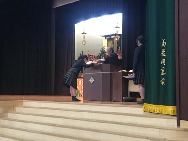 終業式の後は、部活動の大会やコンクールで活躍した生徒への表彰式です。