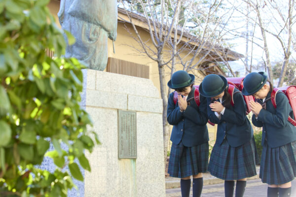 小学部の一日は、親鸞聖人への幼年像に合掌からスタート。心洗われる一日の始まりです。