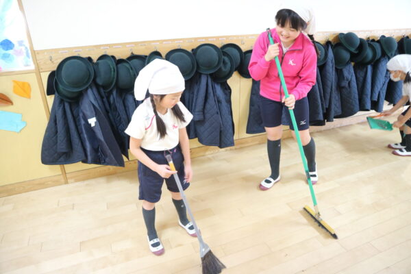 みんなで教室をキレイに掃除。 過ごしやすく心地よい環境を 全員で整える気持ちを学びます。