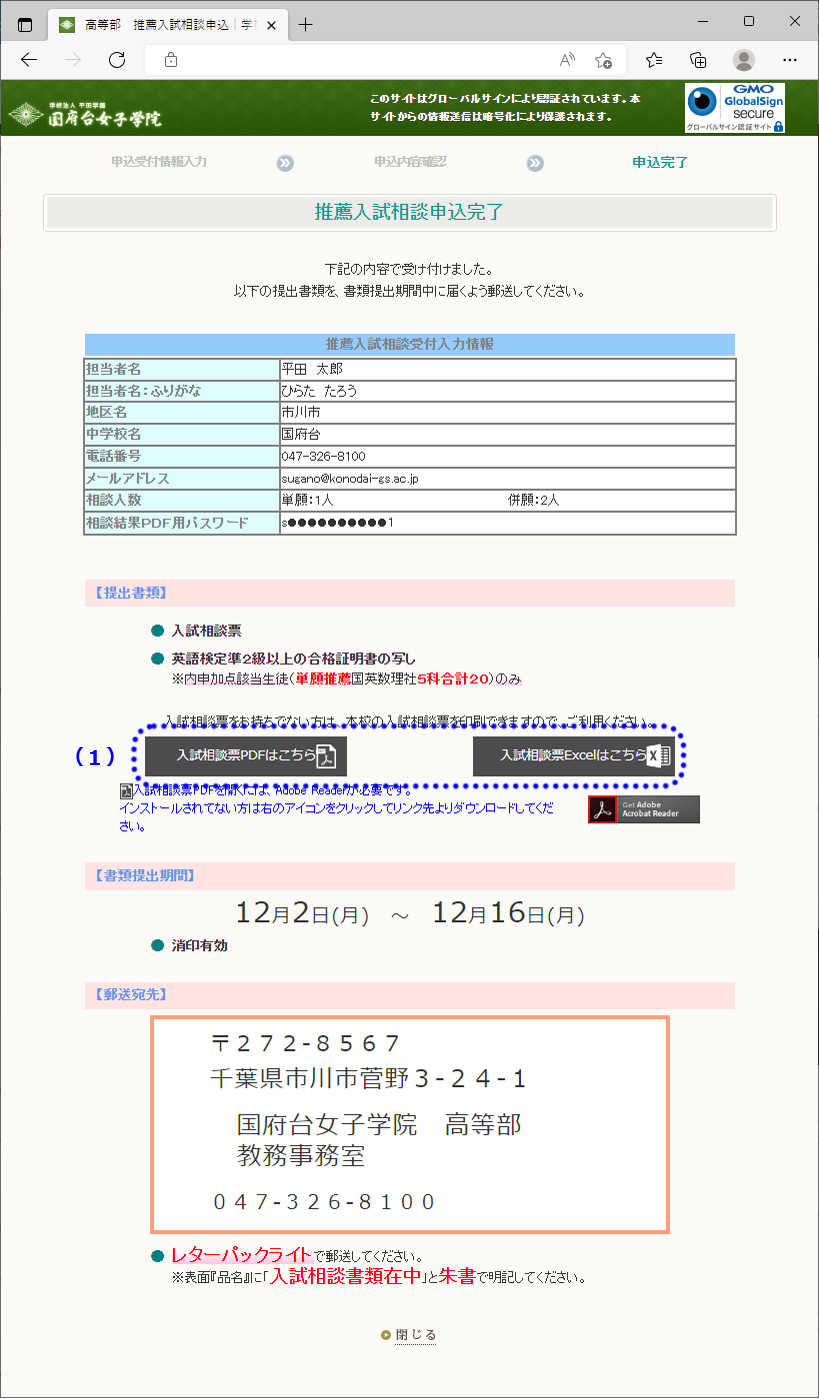 事前申込の際には、受験希望生徒の個人情報・学業成績等を入力することはありません。これらの情報は入試相談票にご記入の上、郵送してください。 |